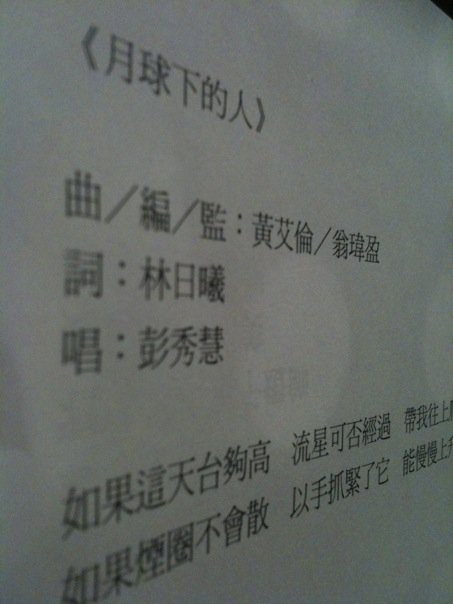 Songwriting & arrangement: 月球下的人(彭秀慧)