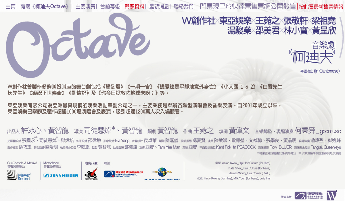 Janet 首次與 W theatre 合作, 參與由張敬軒, 王苑之及梁祖堯主演的音樂劇 “柯迪夫 Octave" 共 19 場的現場小提琴演奏 . 演出由 3/7/2010 開始至 18/7/2010, 星期六日有上下午場. 星期一休演.