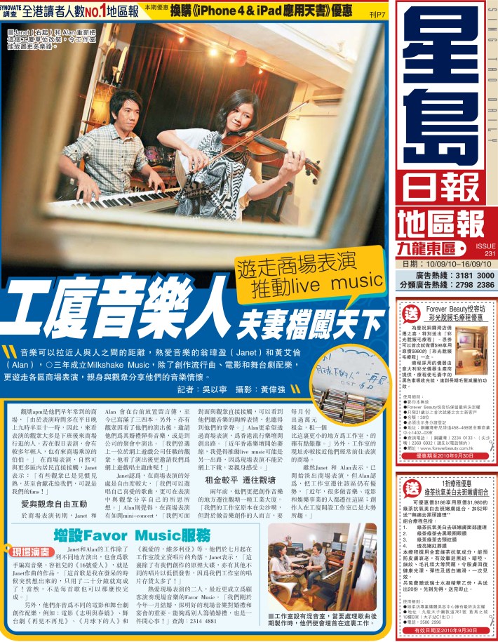 早前Janet跟Alan接受了星島日報地區報的訪問, 分享他們對現場演奏的看法及他們的音樂情懷